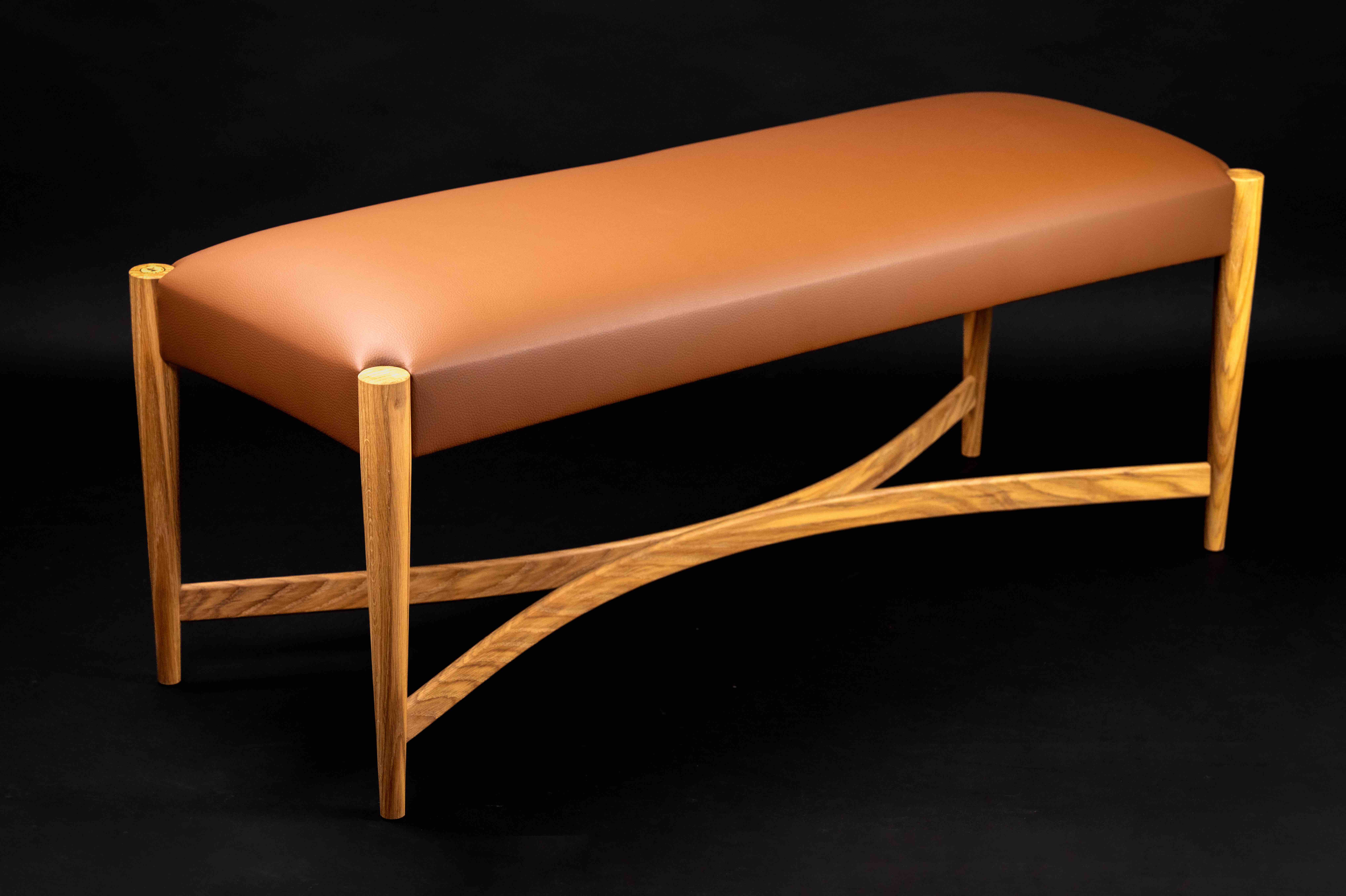 This bench is made from beautiful English oak, with an upholstered leather seat. The bench’s design is both functional and artistic, making it a versatile addition to any space, whether used as a bench to be sat on around a dining table, at the foot of a bed, or in a hallway, it works amazingly in any setting!